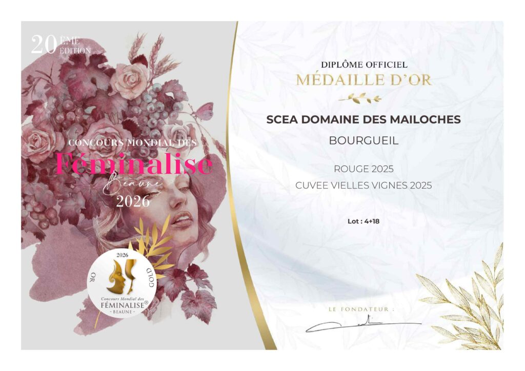 Notre cuvée Vieilles Vignes 2025 a obtenu la Médaille d’Or au Concours Féminalise.